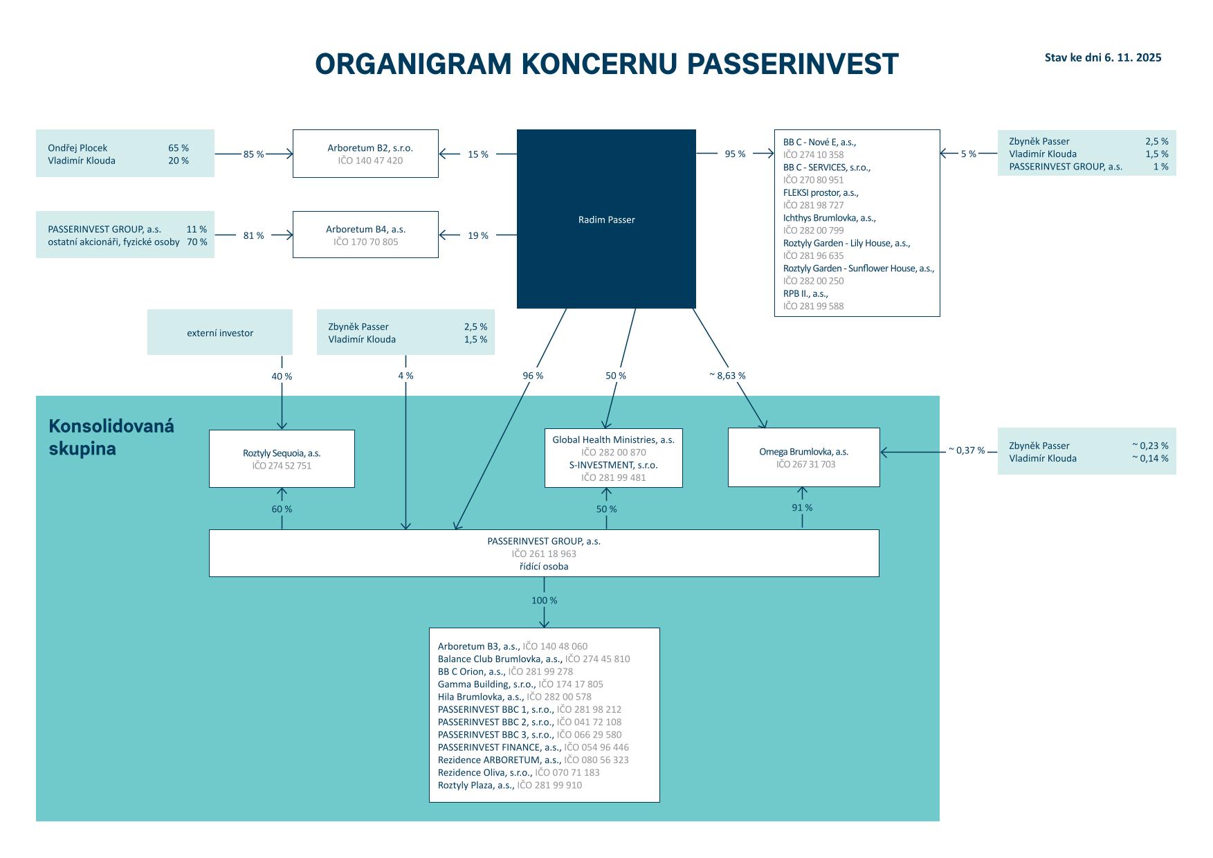 PASSERINVEST GROUP, a.s., IČO 261 18 963, je řídící osoba Koncernu PASSERINVEST.
